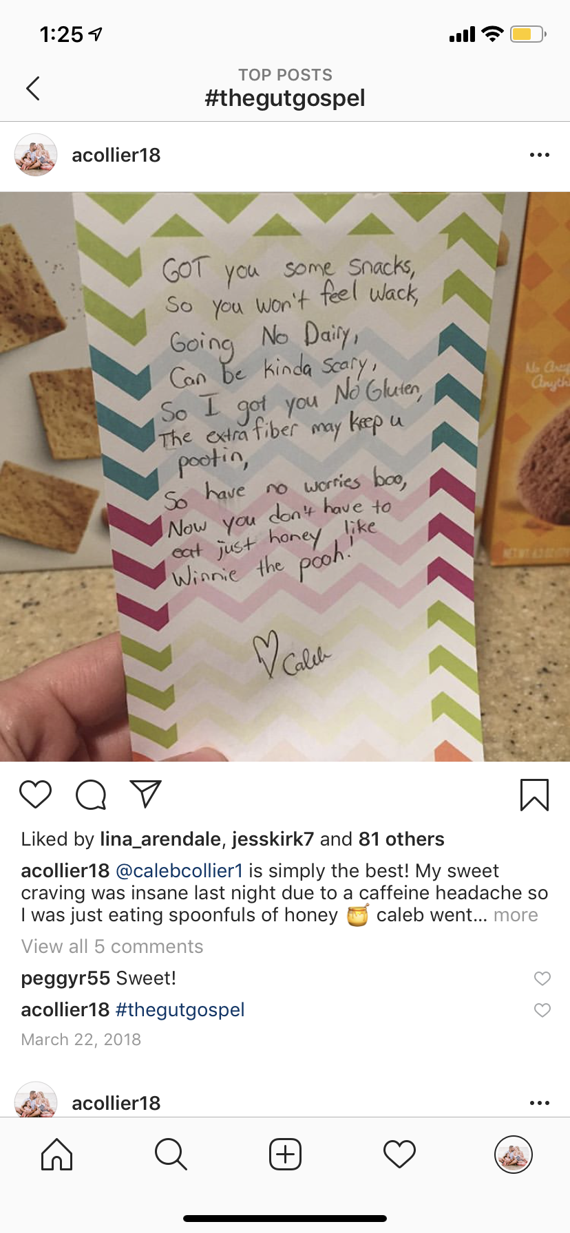 When I changed my diet, I was also weaning off anti-depressants at the same time. I was withdrawing from those chemicals and also caffeine, gluten, dairy and refined sugar. It was not pretty. I will have a post about my onset and battle with PPA another day. Needless to say, I must have been a wreck but my husband was so supportive. The next two pictures are some posts around that time and I’m still laughing over it and such a lucky girl. I was so thankful so many stores like Aldi, Target, Food City, Wal-mart and Publix carry so many allergen friendly foods to help in the transition period.
